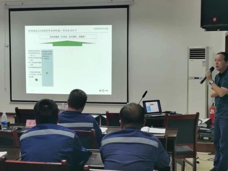 會上,舍弗勒上海技術工程師李博士與我司技術總工蘇工從軸承的基本知識、內部結構、安裝拆卸、維護潤滑、故障判斷、游隙重要性等方面對參培人員進行了詳細的講解。結合我司的服務案例及參培人員日常工作中遇到的維修、操作、保養等實際問題進行了交流和探討。此次技術交流為客戶的檢修工作奠定了良好的基礎,為后續長期合作建立起有效的溝通機制。